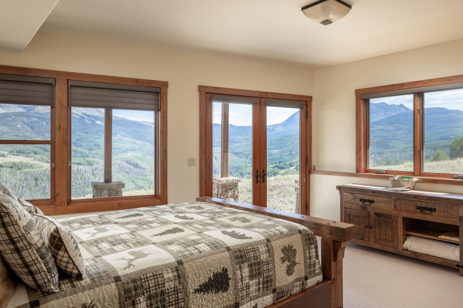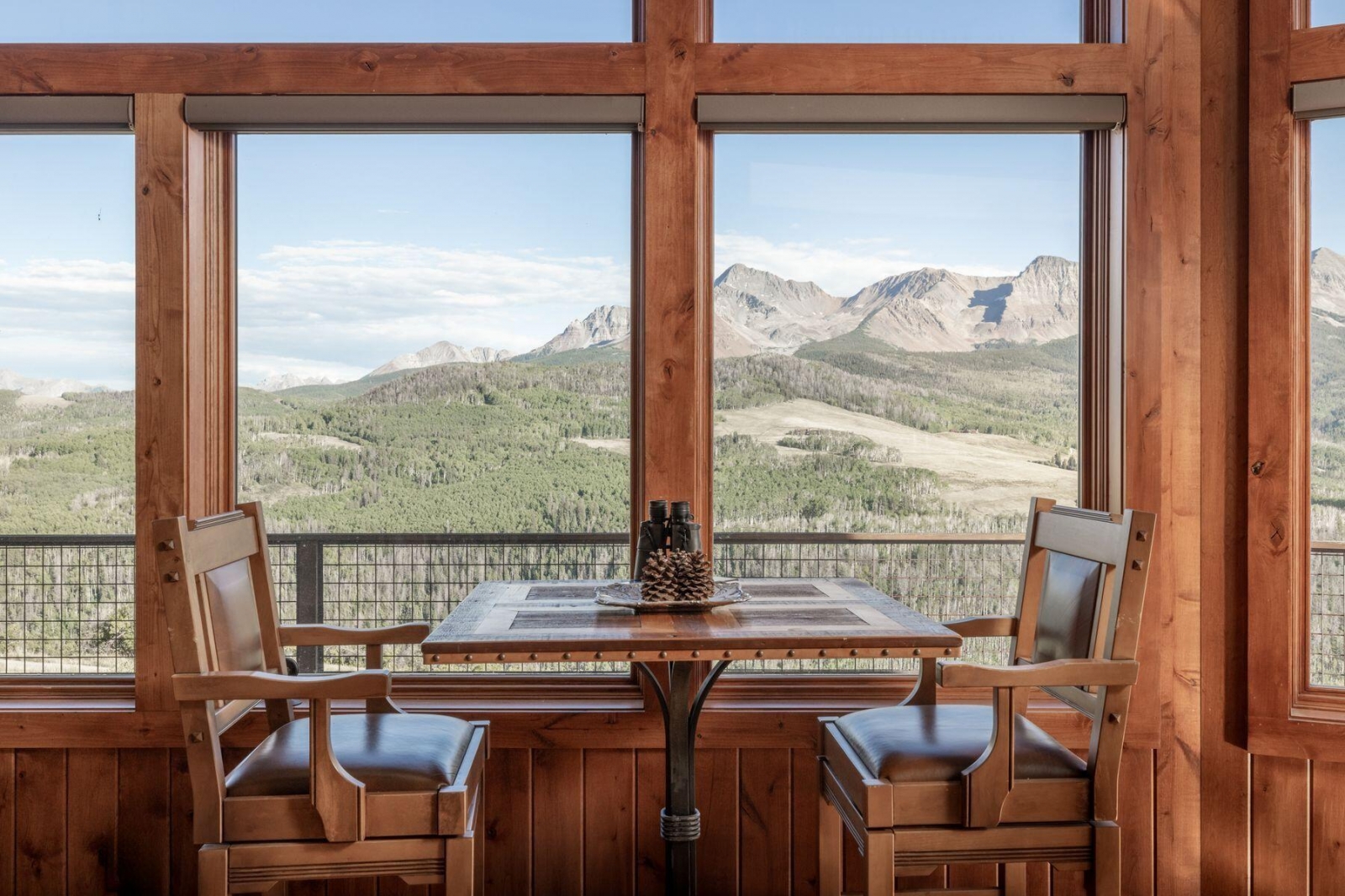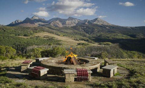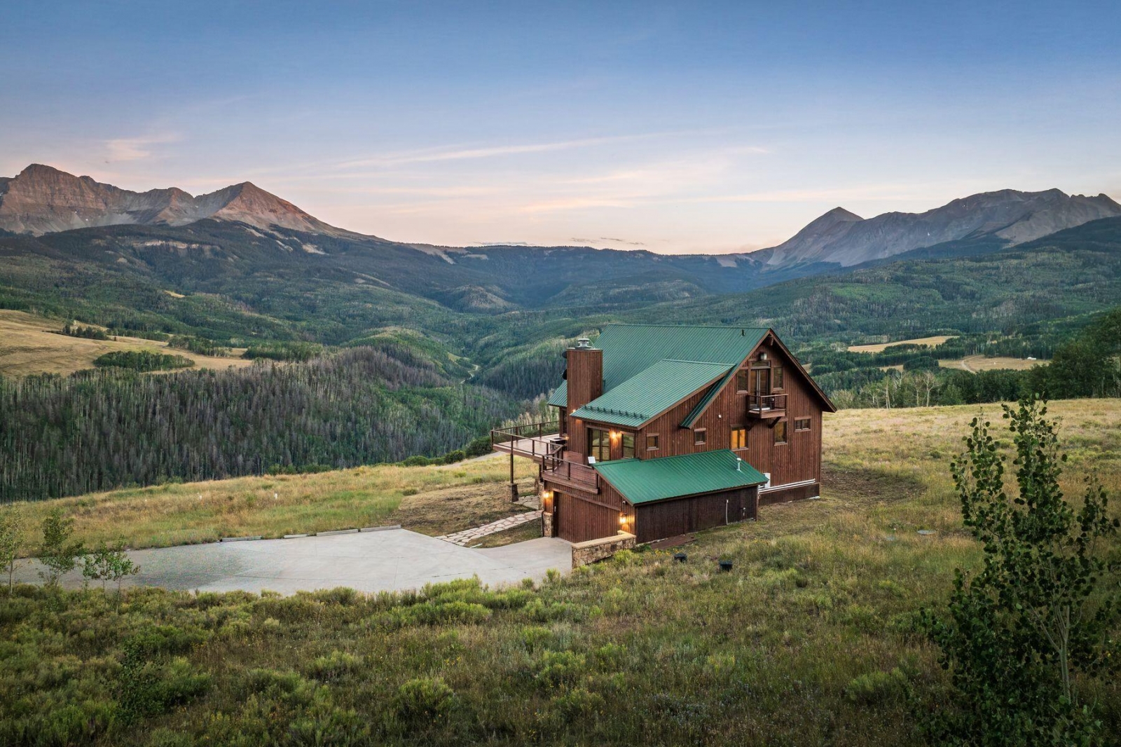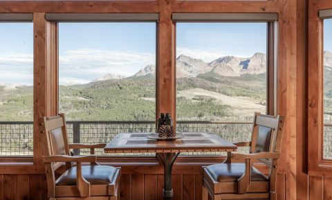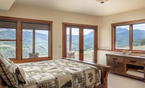 21 miles from downtown Telluride this high alpine retreat on 35 acres commands the most spectacular views of the iconic Wilson Range mountain peaks rising above 14,000 feet directly across the valley. With easy access to Uncompahgre National Forest in GMU 62, it's a year-round retreat for endless outdoor adventure and recreation. The lodge-inspired design is elevated by fine craftsmanship and expansive windows that maximize the big mountain views. The layout offers AIR CONDITIONING, four bedrooms, a vaulted great room with stone hearth and a 2-car garage. This east and south facing homesite bench provides ideal conditions for the solar array to comfortably power the home. Dual propane tanks and a backup generator ensure year-round ease and sustainability in this private setting.
